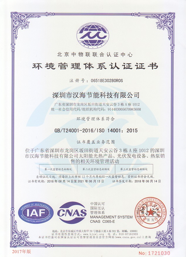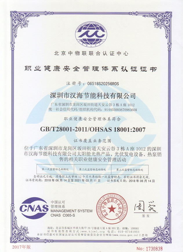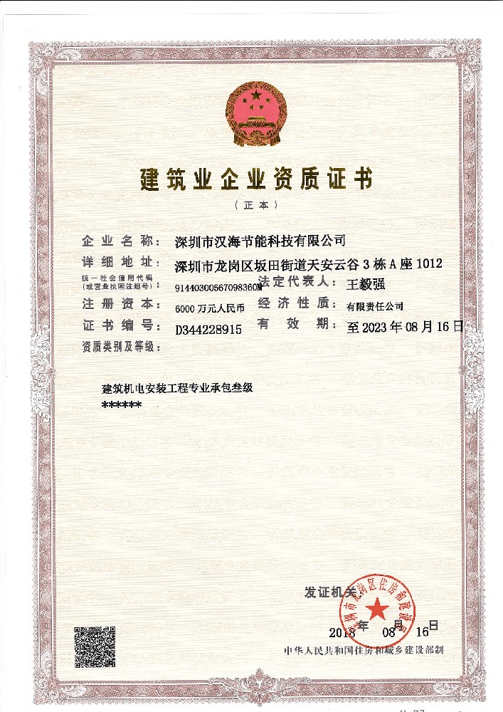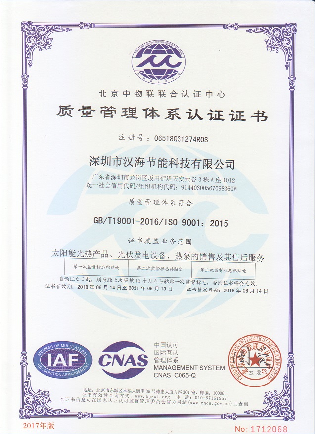 深圳市漢海節(jié)能科技有限公司成立于2011年,注冊資金6000萬元,總部設在深圳,是一家集設計、研發(fā)、施工于一體的專業(yè)化從事太陽能中央熱水工程、熱泵中央熱水工程、中央空調(diào)、光伏發(fā)電、水處理等新能源及節(jié)能環(huán)保行業(yè)的綜合服務商和工程商。在將近10年的發(fā)展歷程中,始終走在行業(yè)發(fā)展的前沿,是專業(yè)從事太陽能光熱、光伏,空氣源、太陽能熱水工程、水源熱泵,中央空調(diào),水處理產(chǎn)品的設計、安裝、售后服務為一體的高新技術(shù)企業(yè);是專業(yè)提供太陽能中央熱水工程、熱泵中央熱水工程、中央空調(diào)工程、光伏發(fā)電工程、水處理工程、太陽能熱水工程等全面解決方案的供應商和工程商,產(chǎn)品涵蓋太陽能集熱器、空氣源熱泵、水源熱泵、中央空調(diào)、光伏組件、太陽能熱水工程等,是新能源的倡導者和推動者。公司成立以來,始終秉承“誠信、責任、專業(yè)、高效”的服務宗旨,以市場需求為導向,以為客戶創(chuàng)造價值為己任的精神,不斷開拓創(chuàng)新,通過多年的快速發(fā)展,公司綜合實力躍居行業(yè)前列。漢海擁有一支經(jīng)驗豐富、善打硬仗的專業(yè)高效團隊;擁有一批專業(yè)的高級工程師、中級工程師、二級建造師、造價工程師、電氣設計師、給排水設計師;擁有一批機電、安防、水、電等專業(yè)技術(shù)施工和售后人員,配備先進齊全,實力雄厚,技術(shù)領(lǐng)先。漢海以質(zhì)量樹信譽、以工藝立標桿、以管理創(chuàng)效益、以服務得人心,工藝水平在業(yè)界獨樹一幟,成為行業(yè)模仿的典范。漢海承建的機電工程(設計、施工)涉及星級酒店、賓館、高檔辦公樓、花園別墅、住宅小區(qū)、學校、水療中心、工廠等各種類型的工程,工程項目遍布全國各地。漢海將致力于成為全球信賴的新能源綜合服務商,為客戶提供新能源的全方位解決方案。未來,漢海將依托國家政策,積極開拓粵港澳大灣區(qū)、中國特色社會主義先行示范區(qū)市場及“一帶一路”沿線國際市場,推動新能源的新輝煌。